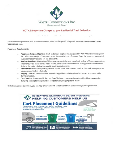 Regular Refuse/Trash Pick Up for the Town of Edgecliff Village is processed by Waste Connections. New Service Days Start on January 19th 2026.